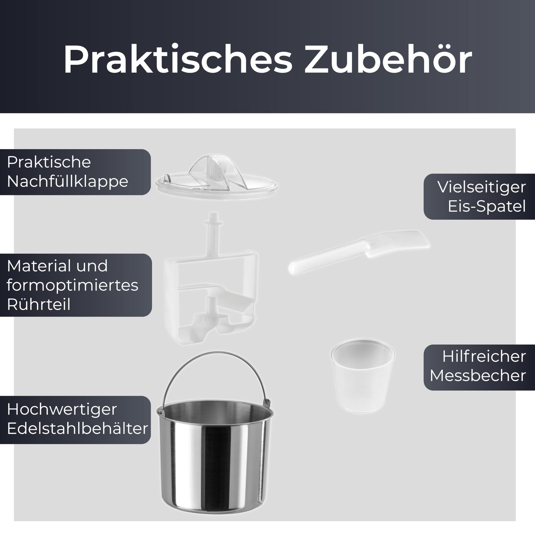 - EISZAUBER: Die kompakte Eismaschine zaubert im Handumdrehen Sorbet, Frozen Yogurt & klassisches Speiseeis – genau nach Ihrem Geschmack! Schnell, einfach & vielseitig für unendlichen Eisgenuss zu Hause.